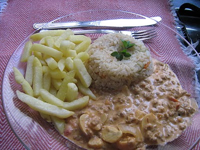 Fiz no sábado esta receita. Na realidade é uma versão de estrogonofe que substitui, para os vegs, os elaborados com carne. Quero acrescentar que somente substitui para os vegetarianos, visualmente, pois a pvt terá gosto de pvt para sempre. Não adianta tentar fazer ter sabor de carne. Ela deverá ser bem tempera sempre! Mas felizmente não é carne e nem será. O sabor é característico e a gente se acostuma como por exemplo o gosto da beterraba (para mim).