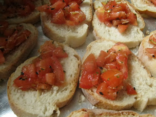 Sempre temos tomates, salsinha, oregano, azeite e alho não é mesmo? Pique tudo, menos o alho que você passará nas fatias de pão.